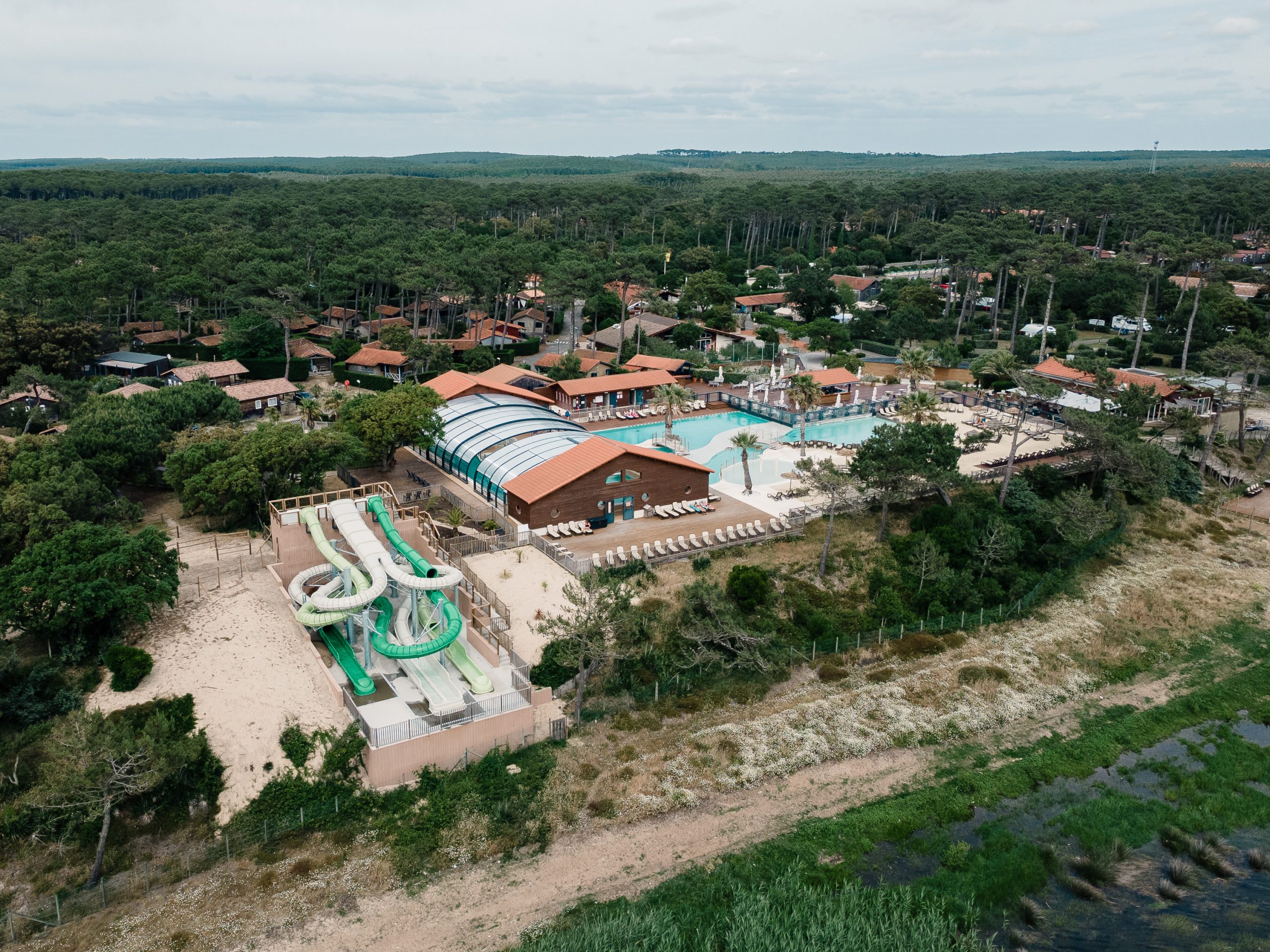 L’espace est doté d’une piscine couverte et d’une piscine extérieure chauffée avec une vue panoramique sur le courant de Contis. Une structure partiellement amovible couvre une partie du bassin et des plages permettant de profiter des espaces au gré des saisons. Six toboggans, un lagon, un solarium… Un petit paradis pour rester au frais et à l’ombre même au cœur de l’été !