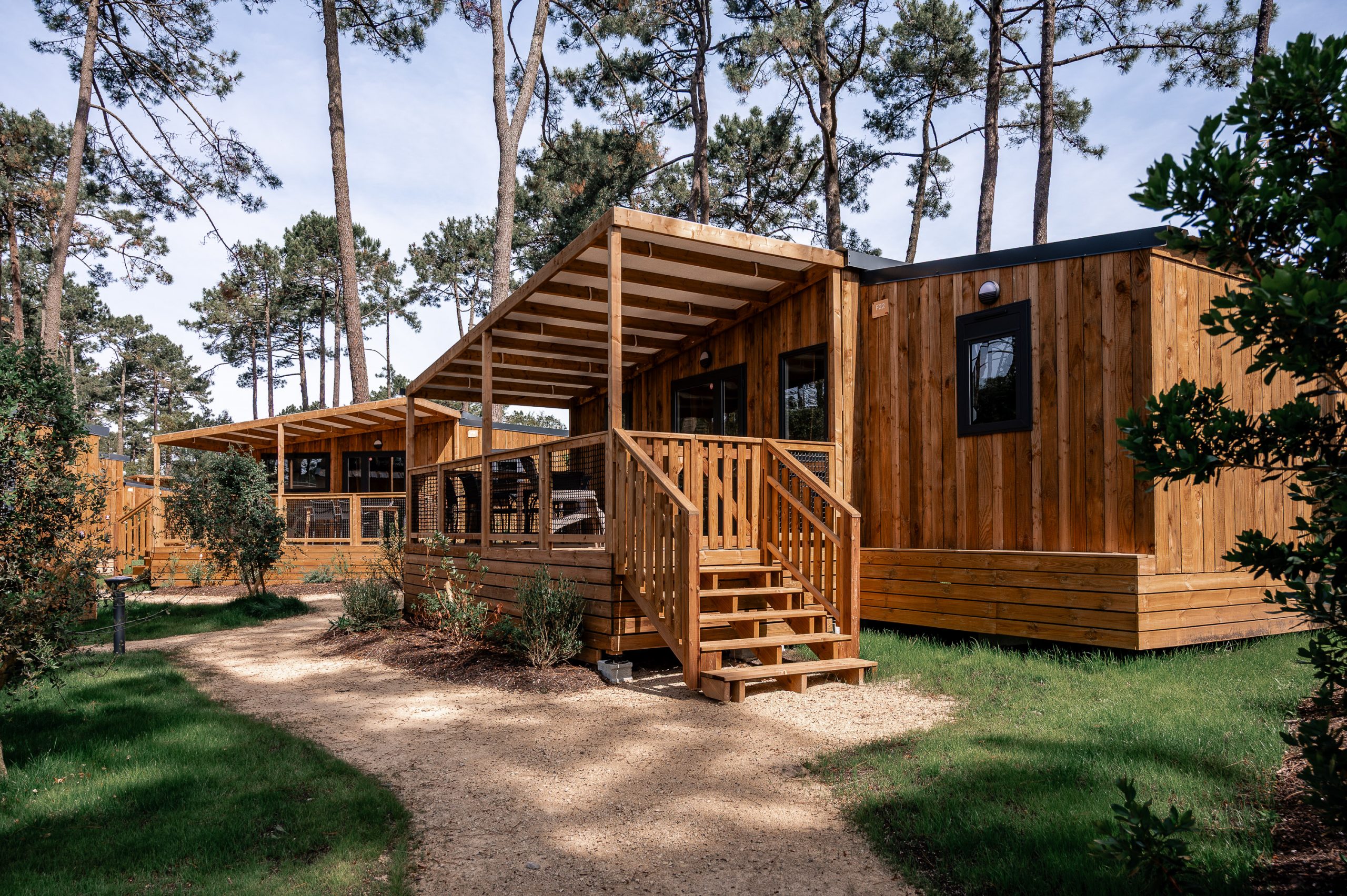 charmants cottages en bois, parfaitement intégrés à leur environnement naturel.